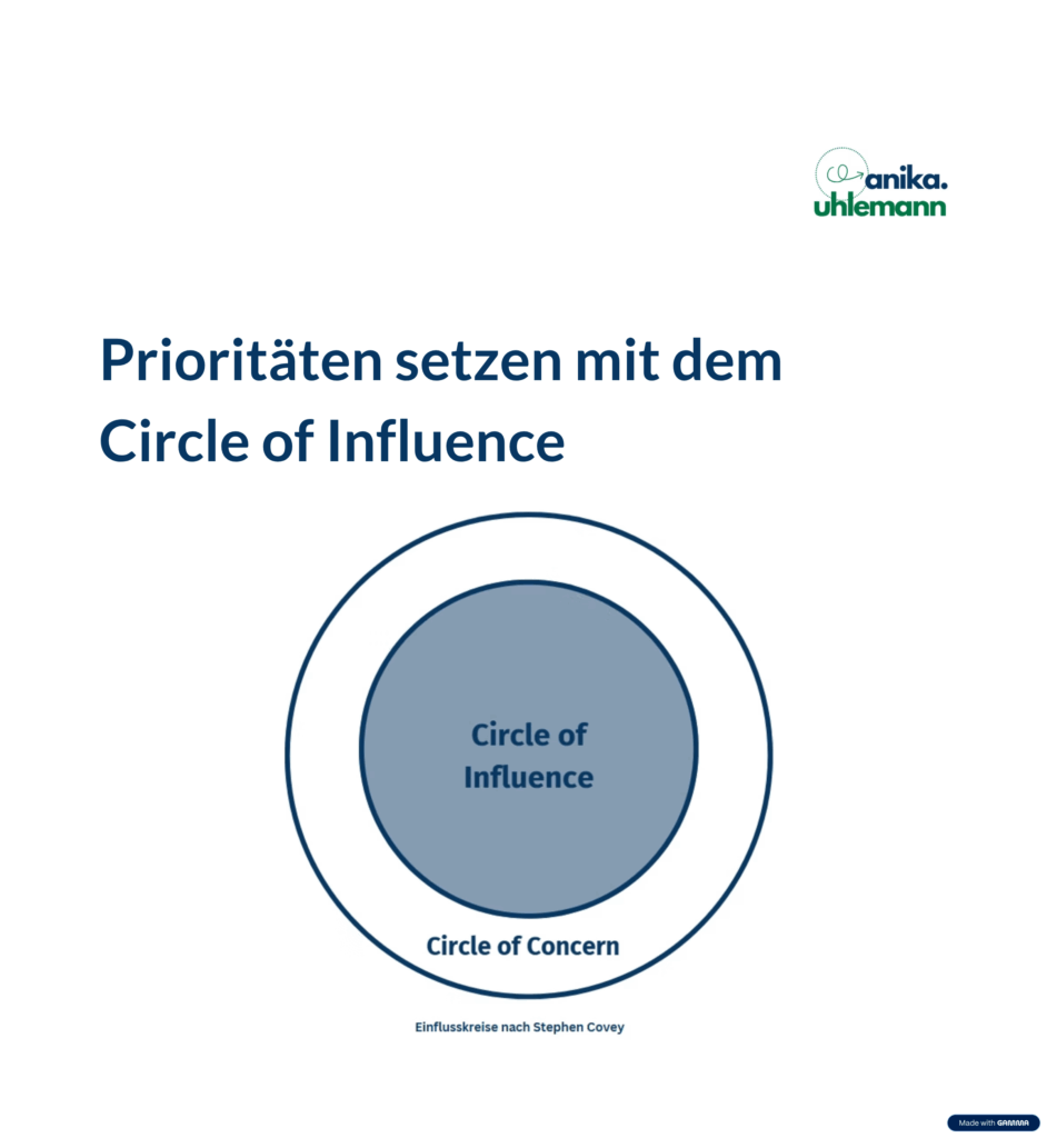 - Der Circle of Influence beschreibt den Bereich, in dem wir tatsächlich etwas verändern können – durch unser Verhalten, unsere Kommunikation und unsere Entscheidungen.